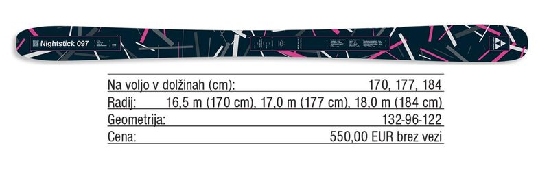 Fischer Nightstick 97 je prava izbira za smučarje, ki želijo ustvarjati, skakati in uživati v svobodi gibanja. S širino 97 mm pod čevljem ponuja idealno ravnovesje med stabilnostjo in okretnostjo, kar omogoča natančne pristanke in hitro odzivnost pri trikih. Njena oblika z dvema špicama (Twin Tip) omogoča vožnjo naprej in nazaj, kar jo naredi popolno za prosto smučanje v parku ali na snežnih valovih. Leseno jedro iz bukve in topola zagotavlja optimalno prilagodljivost in živahen odziv, medtem ko zasnova Sandwich Sidewall poskrbi za natančen prenos moči in stabilnost tudi pri trših pristankih. Nightstick 97 je igriva, vzdržljiva in tehnično dovršena smučka za vse, ki vidijo sneg kot prostor za