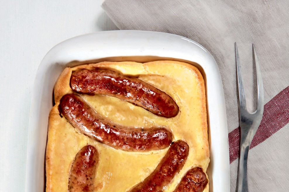 V vmesnem času razžvrkljajte jajci, mleko in sol. Postopoma dosujte še presejano moko in zmešajte gladko testo. Prelijte ga po pečenicah, model postavite nazaj v pečico in vse skupaj pecite še približno 25 minut. Pečenice se morajo obarvati zlato rumeno, površina testa pa mora zakrkniti. Da se pečenice ne bodo zažgale, lahko pred koncem peke model pokrijete z aluminijasto folijo. Pečene klobase postrezite s solato (na primer zeljno).